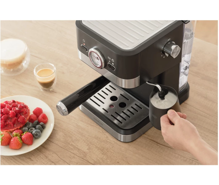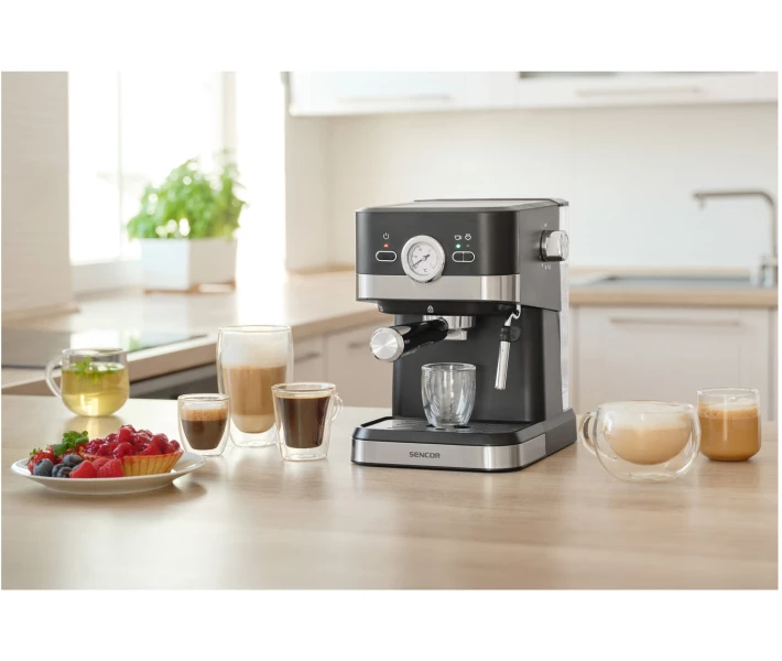 Кавоварка ріжкова SENCOR - це ідеальне рішення для тих, хто цінує високу якість кави та зручність її приготування прямо у себе вдома. Вона має безліч функцій, які роблять процес приготування кавових напоїв максимально комфортним та приємним. Автоматичне приготування напоїв, таких як Американо та Еспресо, забезпечує ідеальний результат при кожному заварюванні. Зручність використання кавоварки забезпечується різними функціями, такими як індикатор об'єму води, перемикач УВІМК/ВИМКН зі світловим індикатором та протиковзні ніжки, що забезпечують стабільність при роботі пристрою. Бойлерна нагрівальна система забезпечує швидке і рівномірне нагрівання води, а функція попереднього запарювання дозволяє отримати максимум аромату та смаку з кавових зерен. Поворотний кран для пари, механічне керування та можливість регулювання міцності та обсягу напою роблять процес приготування кави ще більш персоналізованим. Індикація готовності до роботи та автовимкнення забезпечують безпеку та економію енергії. Крім того, кавоварка SENCOR дозволяє одночасно приготувати дві чашки кави та забезпечує можливість подачі гарячої води для чаю. У комплекті з кавоваркою поставляються всі необхідні аксесуари для зручності використання, включаючи тримач фільтра, мірну ложку та два фільтри для однієї та двох чашок.