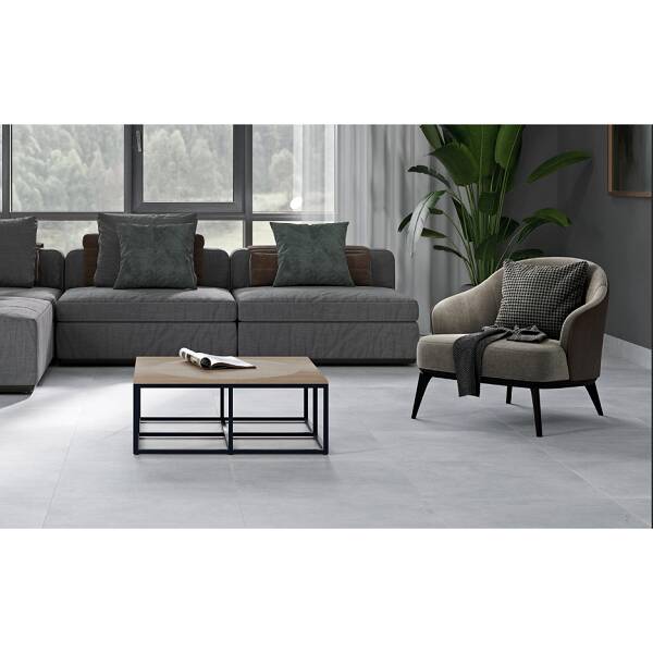 Керамограніт у світло-сірому відтінку з матовою поверхнею створює в інтер’єрі атмосферу спокою та сучасності. Формат 598×1198 мм ідеально підходить для укладання на великі поверхні, такі як підлоги в коридорах, холах або ванних кімнатах. Плитка має високу зносостійкість і легкість у догляді, що робить її ідеальним вибором для приміщень з високою прохідністю.