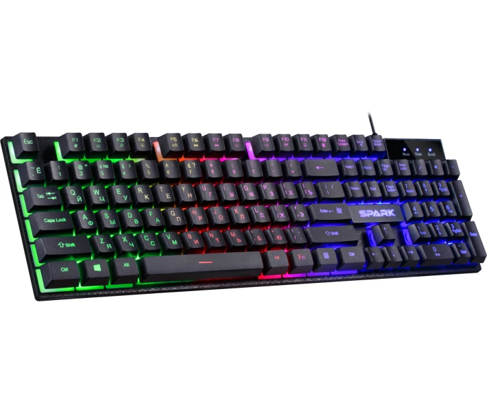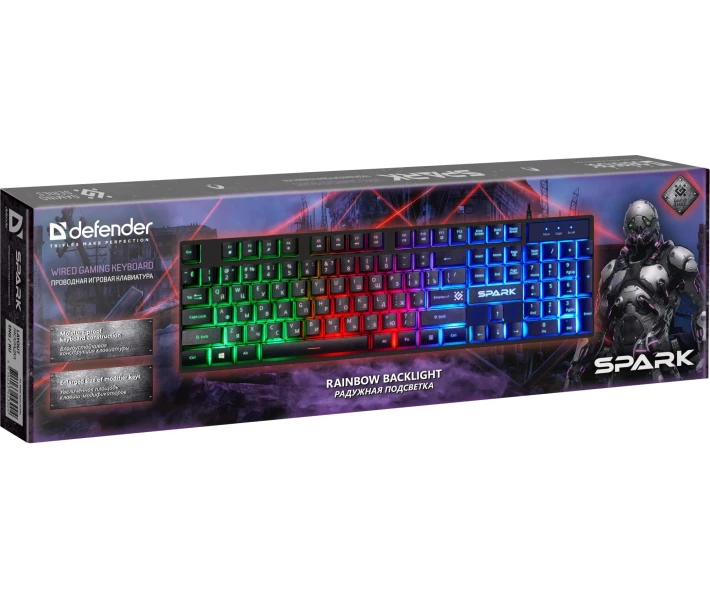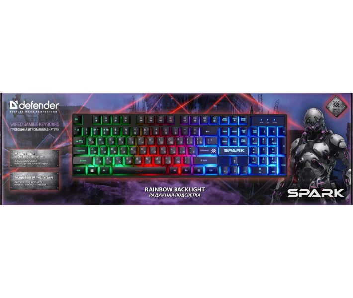 Повнорозмірна мембранна ігрова клавіатура Defender Spark GK-300L стане надійним компаньйоном у світі комп’ютерних розваг для геймерів-початківців. Вона оснащена LED підсвічуванням, яке можна виключити, використовуючи кнопку Scroll Lock. "Гарячі" клавіші надають швидкий доступ до офісних, мультимедійних програм та мережі інтернет. Водостійка конструкція клавіатури Defender Spark GK-300L убезпечує від потрапляння вологи на внутрішній механізм, а висувні ніжки дозволяють обрати оптимальний кут нахилу. Купити клавіатуру Defender Spark GK-300L (45302) Ви можете, оформивши замовлення у нас на сайті, а також телефоном гарячої лінії.