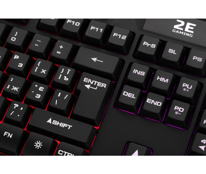 2E KG340 Ukr USB - мембранна повнорозмірна ігрова клавіатура. Стильний лаконічний дизайн вдало доповнить будь-яку ігрову зону. Ця клавіатура готова до безкомпромісної боротьби. Вона виготовлена зі зносостійких матеріалів, тому забезпечить тривалий термін експлуатації. Ковпачки з підсвічуванням з міцного ABS-пластика і 104 клавіші забезпечать користувачу незаперечну перевагу в іграх і повсякденних завданнях. Для додаткової зручності передбачені 10 мультимедійних кнопок.