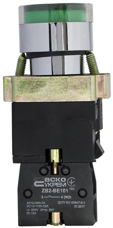 Характеристики Кнопка АСКО ХВ2-BW3371 зелена з підсвіткою