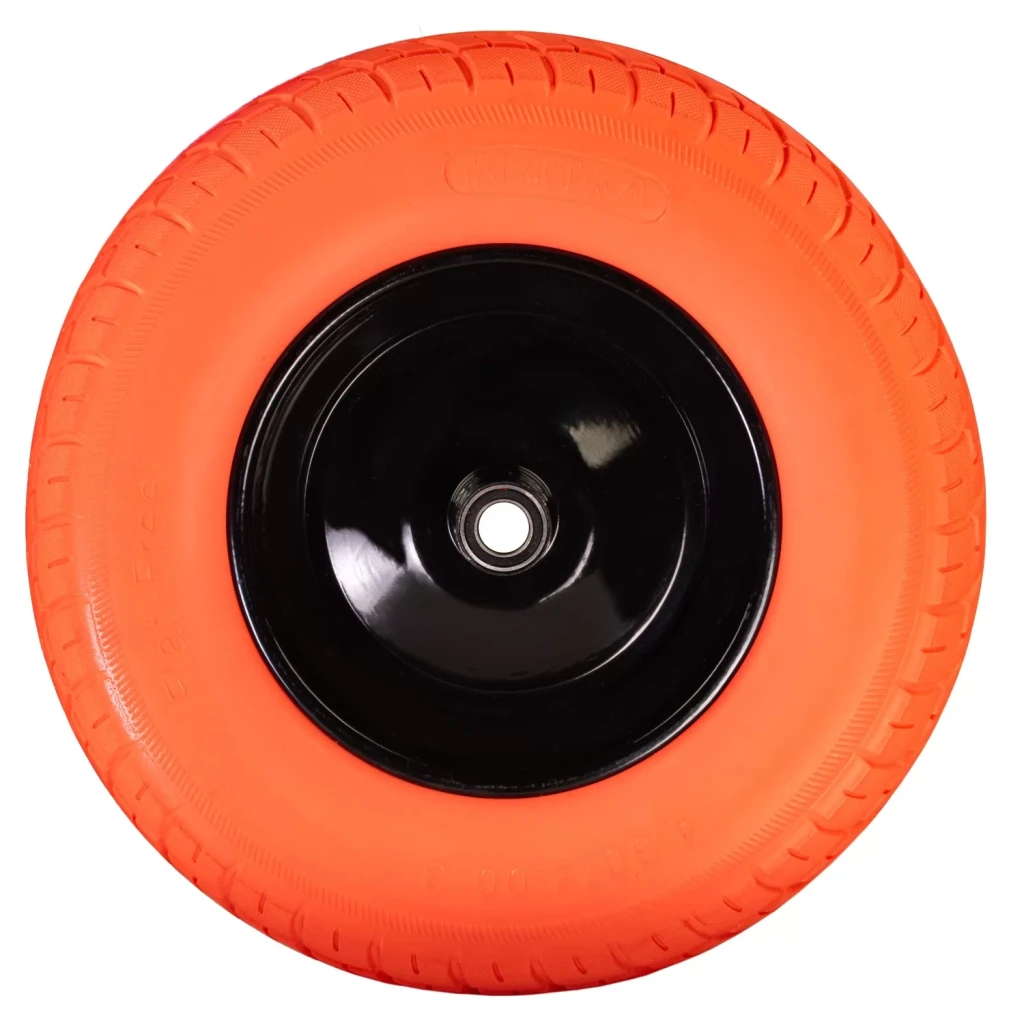 Оскільки це колесо виготовлене із суцільного поліуретану, воно повністю захищене від проколів чи порізів. Його цілісна структура не потребує накачування, що дозволяє працювати без зупинок і не турбуватися про стан колеса.