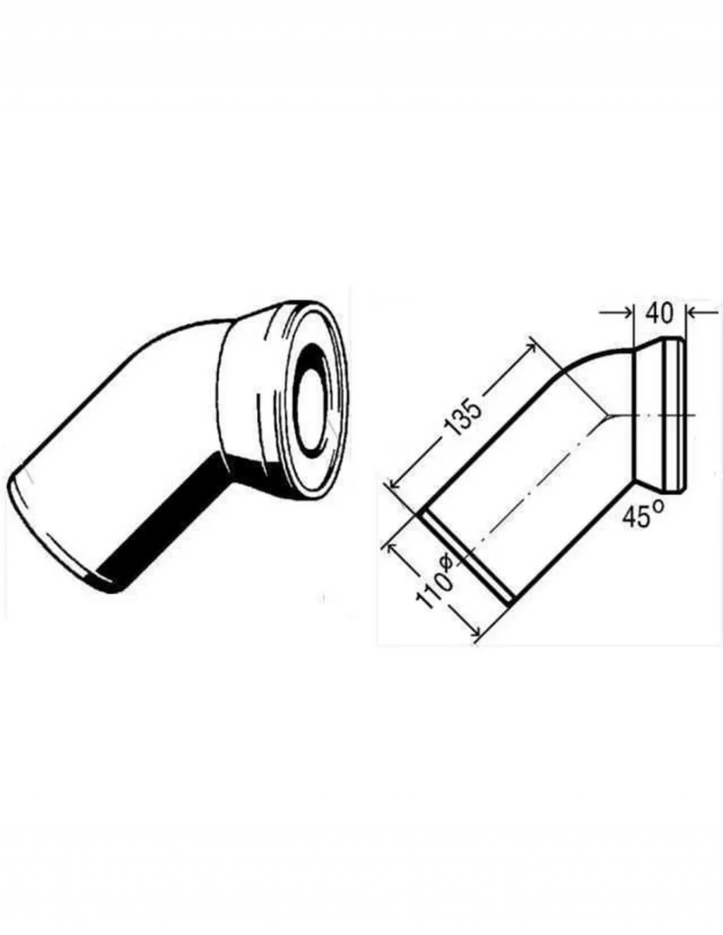 Коліно Віего під кутом 45 градусів призначене для з'єднання унітазу з каналізаційною системою. Виготовлене з якісного матеріалу, воно забезпечує герметичне і надійне підключення, спрямовуючи стоки під оптимальним кутом. Завдяки гладкій внутрішній поверхні, коліно запобігає утворенню засмічень, забезпечуючи тривалу експлуатацію без потреби частого обслуговування.