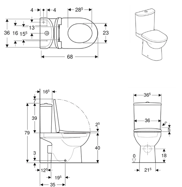 Характеристики Компакт GEBERIT SELNOVA горизонтальний випуск, напівзакрита форма, сидіння з кришкою