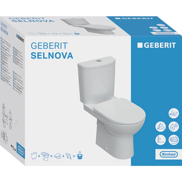 Інформація Компакт GEBERIT SELNOVA горизонтальний випуск, напівзакрита форма, сидіння з кришкою