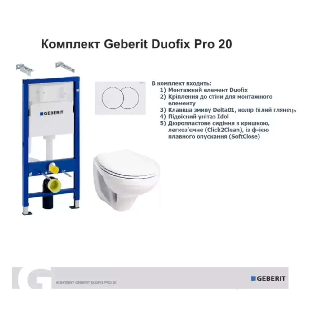 - Комплект GEBERIT Duofix PRO 20, інсталяція для підв.унітазу Delta 12см із кріпленням до стіни