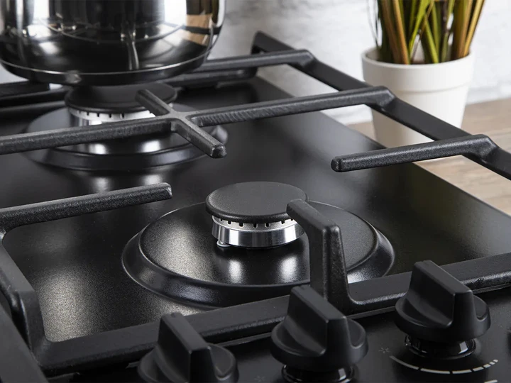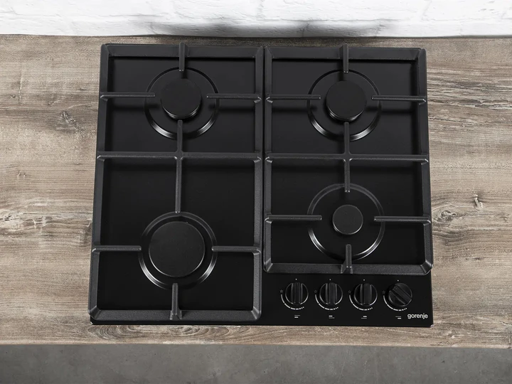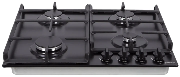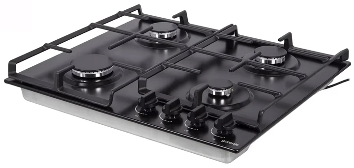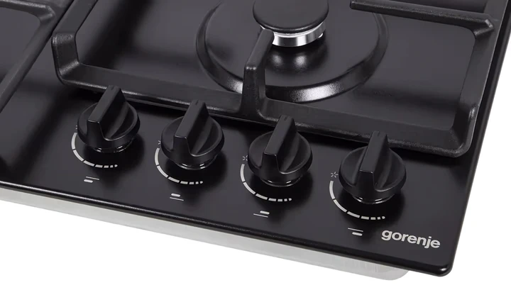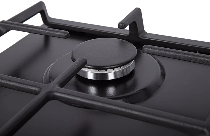 Варильна поверхня оснащена системою газ-контроль, яка забезпечує безпеку під час приготування, а також електропідпал, що полегшує запалювання конфорок. Поворотні перемикачі розташовані на фронтальній панелі, забезпечуючи зручний доступ до керування. У комплект входять форсунки для пропан-бутану, чавунні решітки та емальована сталь, що гарантують довговічність та стійкість до високих температур.