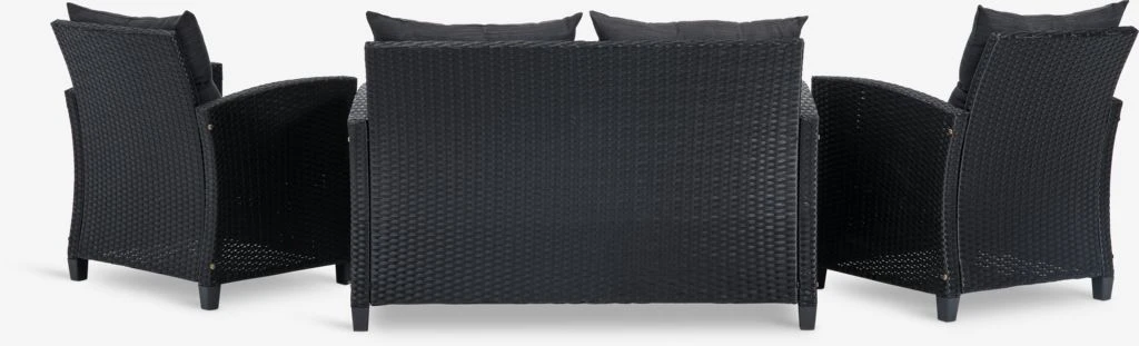 4-місний модульний комплект. Стіл: сталь, промаслена деревина твердих порід FSC® і ротанг із ПВХ. Ш56 x Г93 x В43 см. 2-місний диван і крісло: сталь і ПВХ-ротанг. На. Розкішні подушки з міцним тканим чохлом.