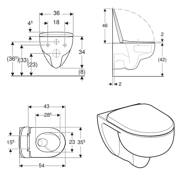 Інформація Комплект підвісного унітаза Geberit SELNOVA,TURBOFLASH лійкоподібного,з сидінням з кришкою: Т=54