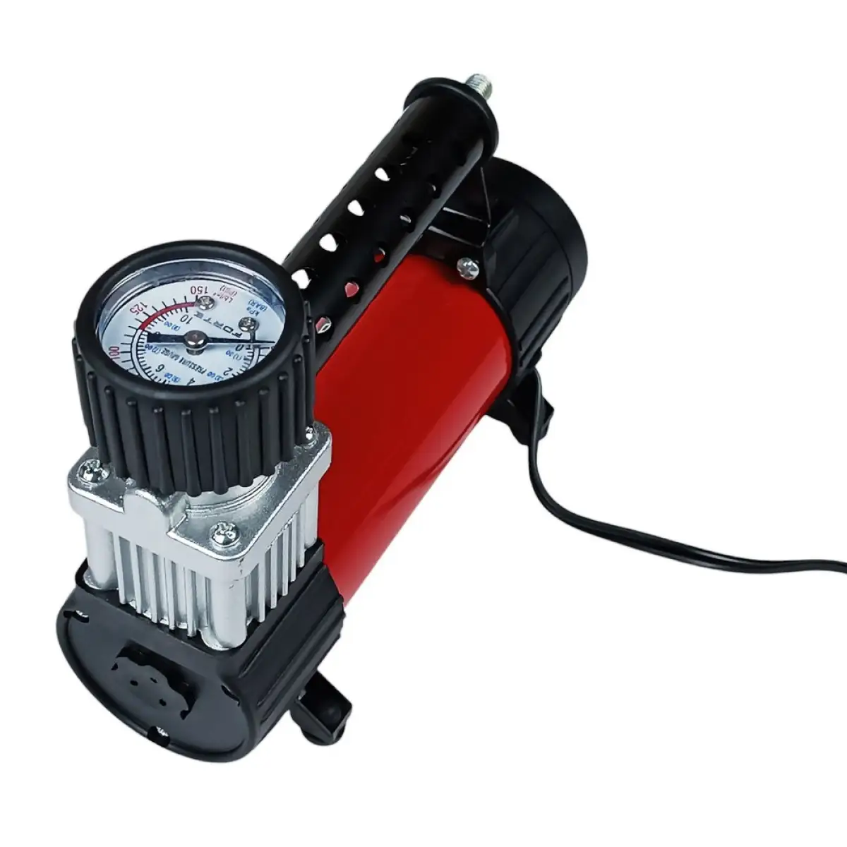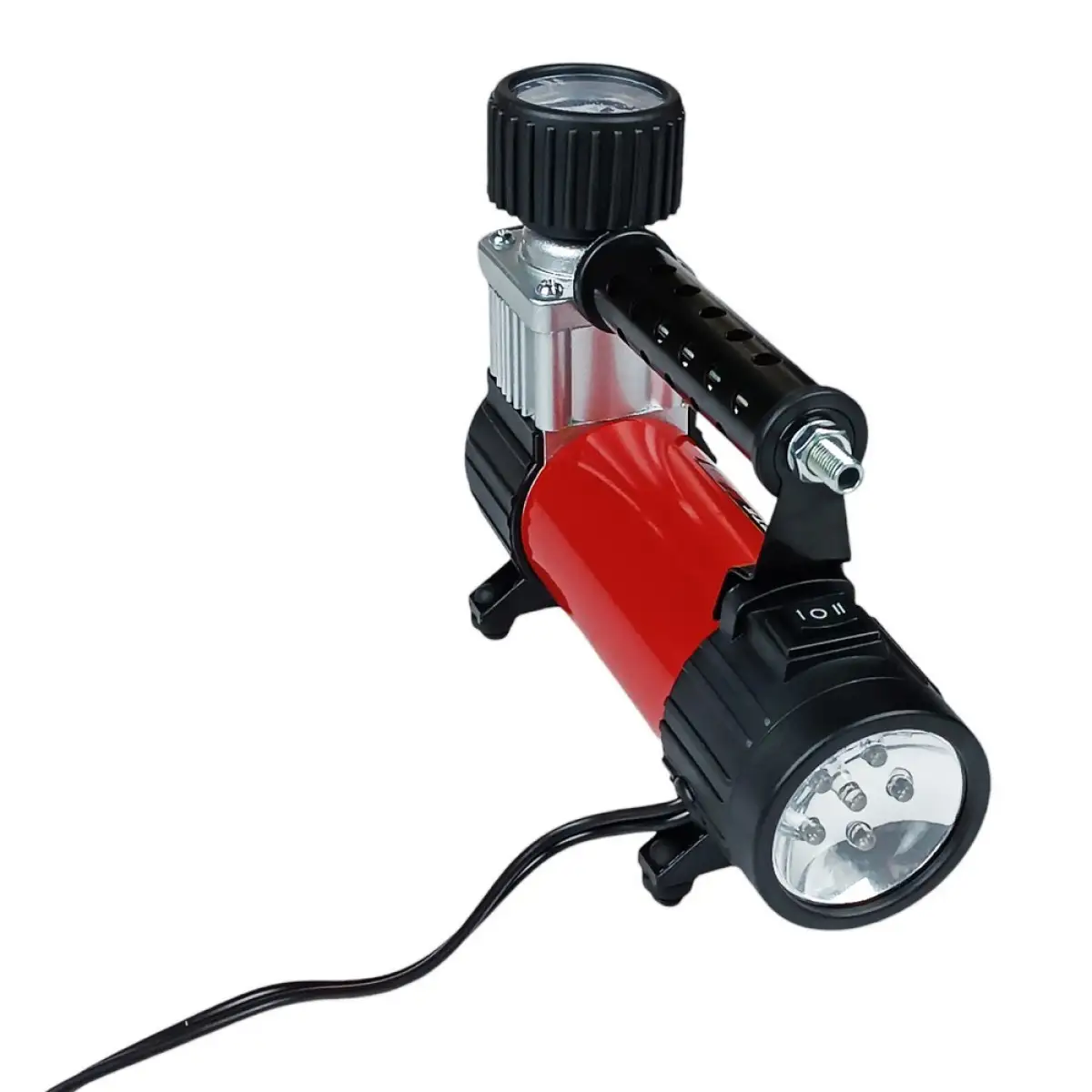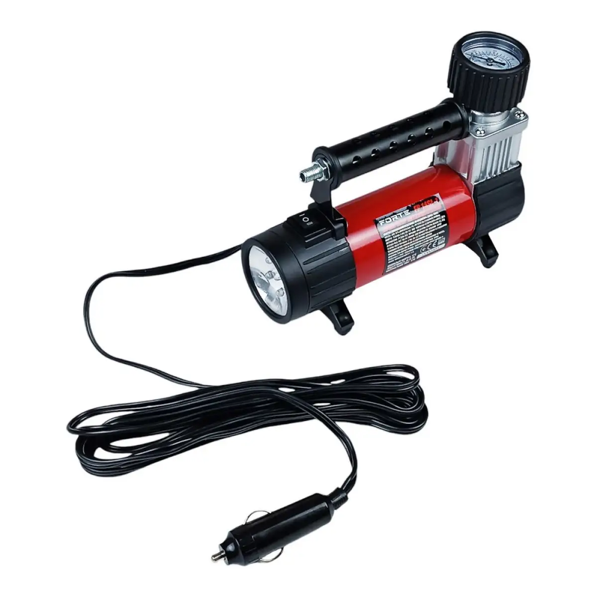 Компрессор автомобільний FP 14SL-1 призначений для швидкого накачування шин автомобілів, велосипедів, мопедів і різних розважальних, спортивних предметів (м ячів, кіл, човнів). Головною перевагою компресора є металевий поршень і шатун із тефлоновим кільцем ущільнювача. Корпус компресора виготовлений із металу, завдяки чому швидко й ефективно розсіює тепло від електродвигуна під час роботи. Компресор обладнаний аналоговим манометром. Переваги: Вбудований ліхтарик Сумка для зберігання Максимальний струм споживання: 14 А Високоточний манометр Максимальний тиск 7 АТМ Висока продуктивність 35 л/хв