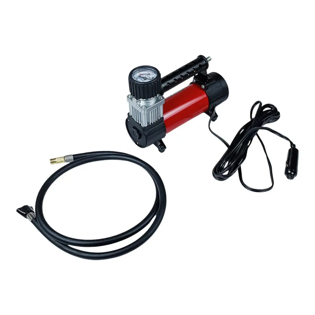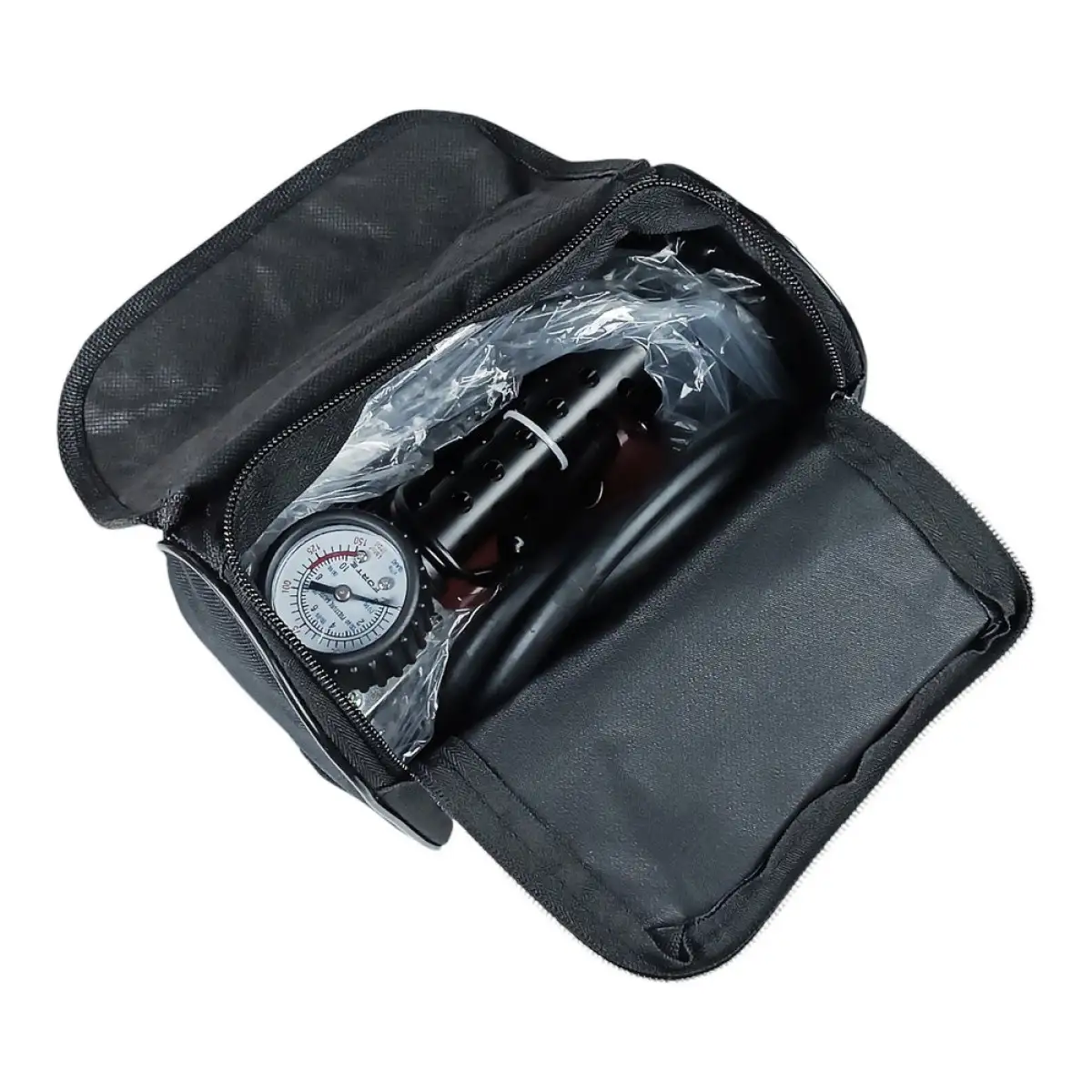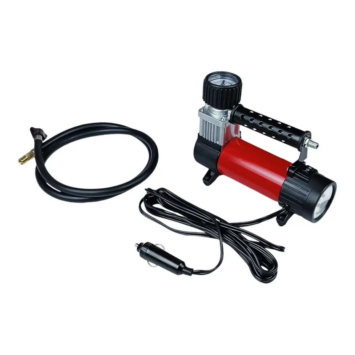 Компрессор автомобільний FP 14SL-1 призначений для швидкого накачування шин автомобілів, велосипедів, мопедів і різних розважальних, спортивних предметів (м ячів, кіл, човнів). Головною перевагою компресора є металевий поршень і шатун із тефлоновим кільцем ущільнювача. Корпус компресора виготовлений із металу, завдяки чому швидко й ефективно розсіює тепло від електродвигуна під час роботи. Компресор обладнаний аналоговим манометром. Переваги: Вбудований ліхтарик Сумка для зберігання Максимальний струм споживання: 14 А Високоточний манометр Максимальний тиск 7 АТМ Висока продуктивність 35 л/хв