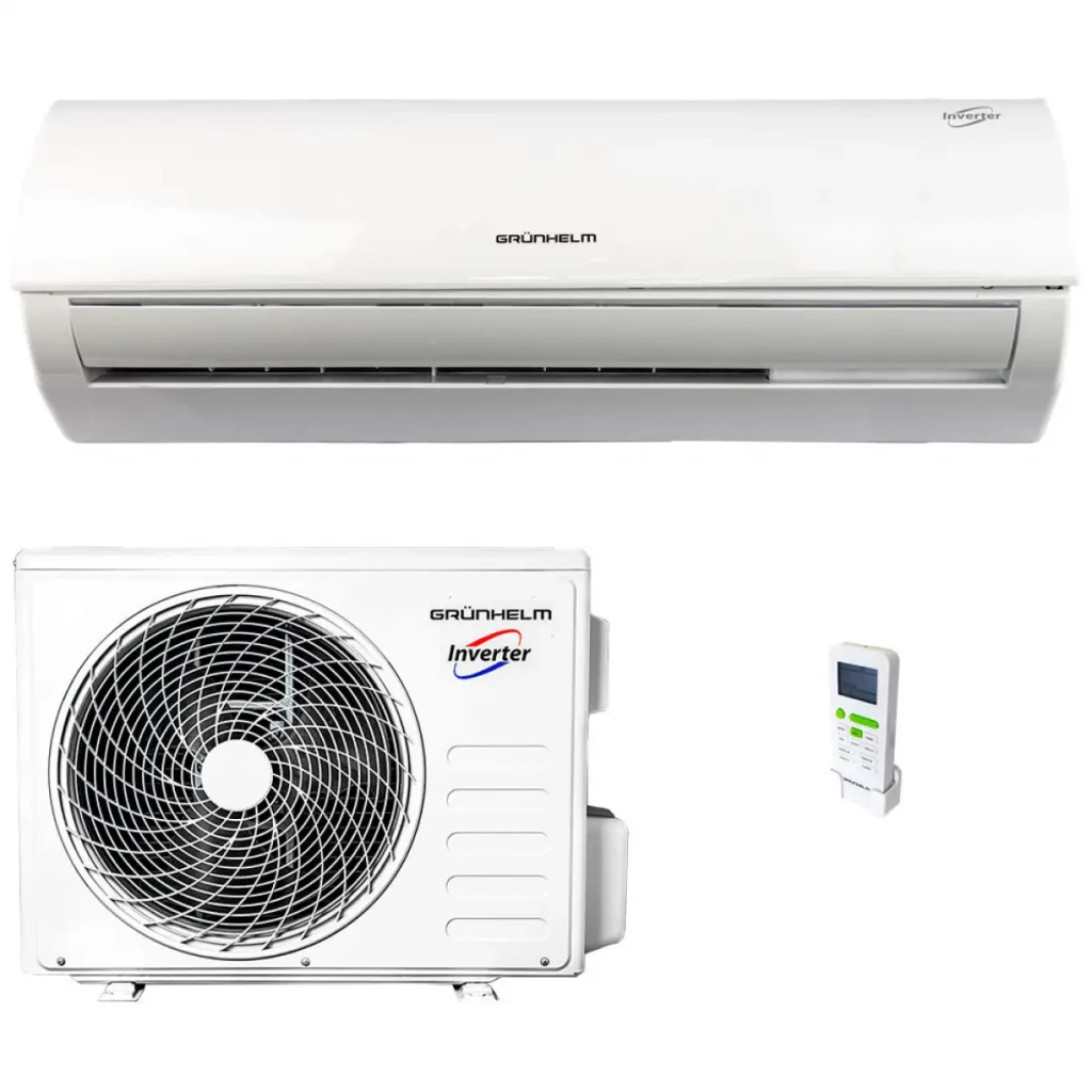 Настінний кондиціонер компанії Grunhelm - це потужний у своїй бюджетній категорії агрегат. Здійснює охолодження, обігрів, вентиляцію, осушення повітря. Хладогент R32 хімічна формула CH2F2