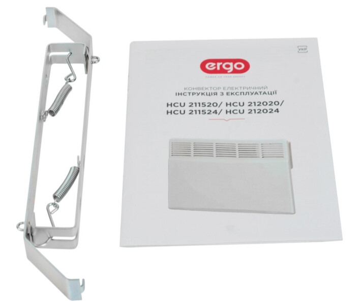 У комплекті з конвектором Ergo HCU 211524 Ви отримуєте монтажні кронштейни для установки на стіну. Але додатково можна купити опорні ніжки, щоб мати можливість мобільного використання даного обігрівача. Тим більше, що вартість їх зовсім невисока.