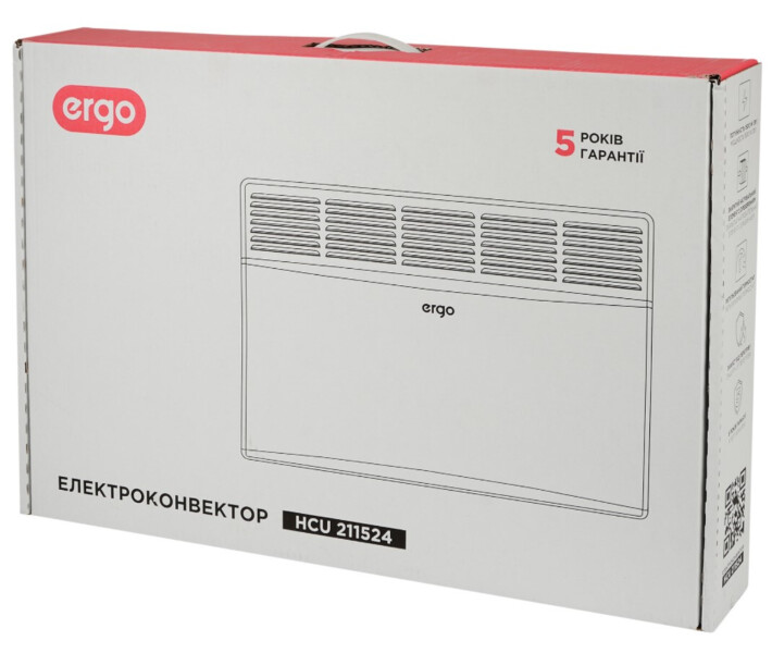 Комфорт в нашому житті забезпечується безліччю факторів. І підтримання потрібної температури - один з них. У холодну пору року мати можливість обігріти приміщення швидко і безпечно - ось завдання, з яким конвектори Ergo HCU 211524 справляються дуже легко. При невисокій ціні модель відрізняється сучасним дизайном, універсальністю застосування і достатнім для приладу такого рівня функціоналом. Крім того, ступінь захисту від вологи IP24 дозволяє встановлювати конвектор у ванній кімнаті, що особливо актуально тим, у кого є маленькі діти.