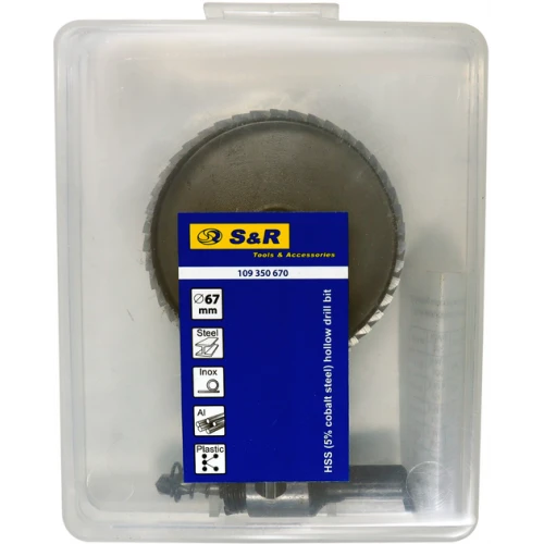 Коронка по металу S&R MEISTER 67 мм у зборі - інструмент для різання отворів у сталі, кольорових металах, а також у пластику.