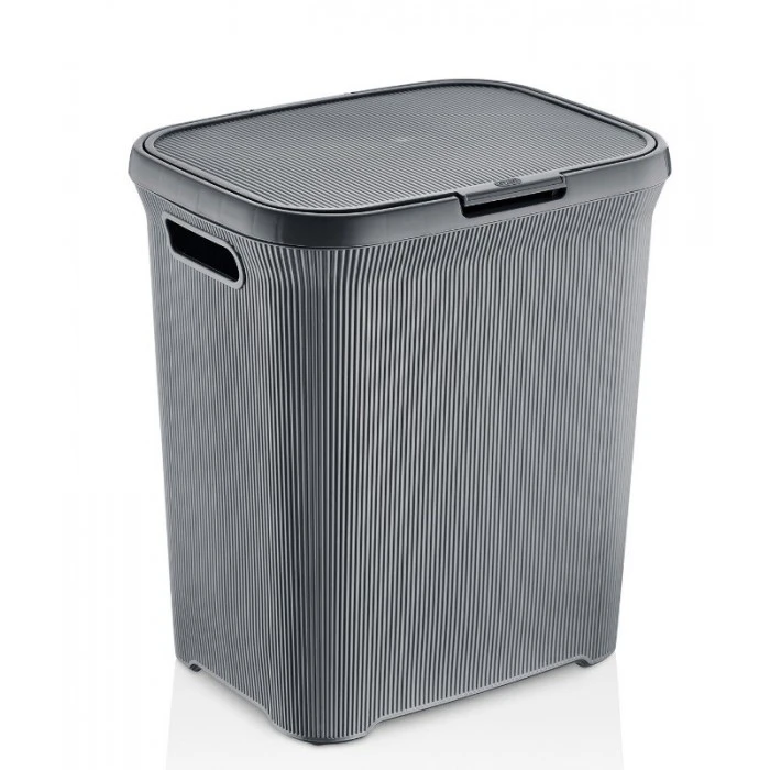 Місткий та сучасний кошик для білизни об’ємом 52 літри. Виготовлений із міцного пластику з перфорованими стінками для вентиляції. Стильний дизайн серії LINE ідеально доповнить інтер’єр ванної кімнати чи пральні. Зручна кришка забезпечує гігієнічне зберігання білизни.