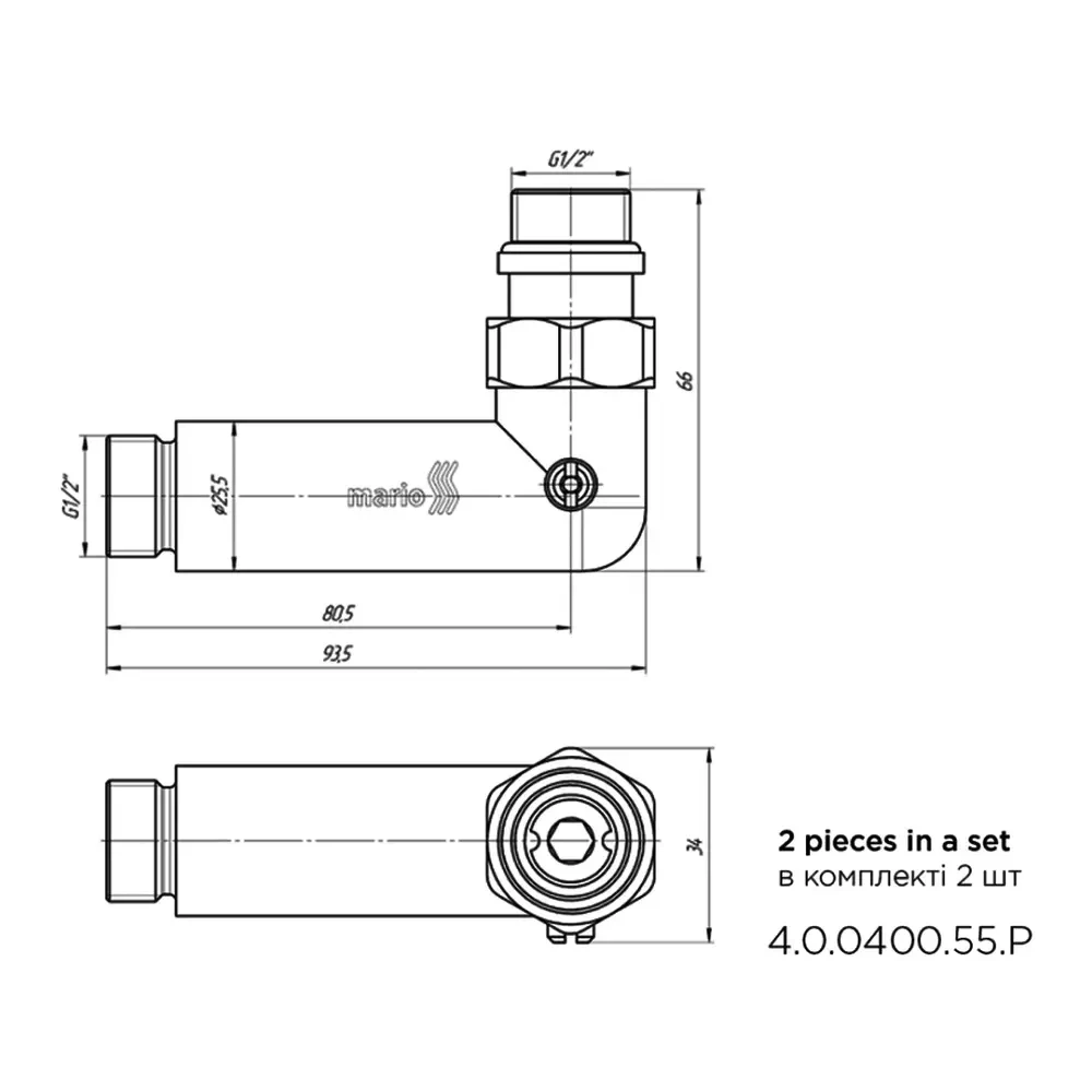 Кран кутовий запірний Маріо - вид запірної арматури, який служить для повного виключення гідравлічного удару в момент заповнення рушникосушки. За допомогою крана можна регулювати потік опалювальної рідини, що проходить через опалювальний прилад або від'єднати рушникосушку від системи центрального опалення. Також він призначений для сервісного обслуговування опалювальних систем: монтажу/демонтажу опалювальних приладів при проведенні оздоблювальних робіт або ремонту опалювальних систем. У комплект входить 2 кутових крани з декоративними чашками для приховування місць підключень.