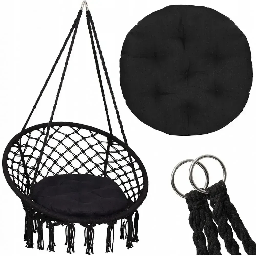 - Крісло підвісне Bonro бразилійське гойдалка гамак B-092 чорний 120 кг + подушка