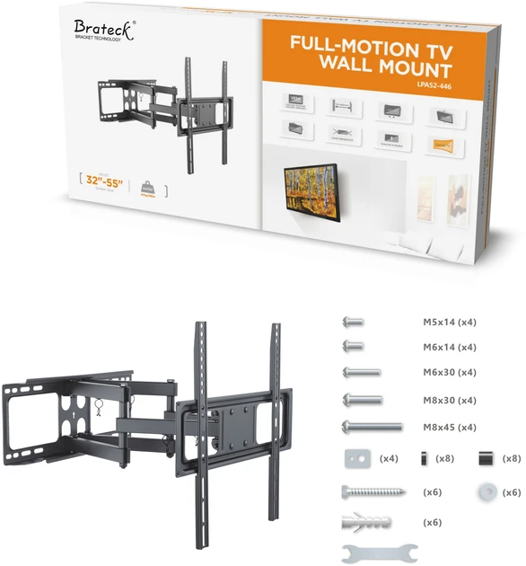 Кронштейн Brateck ідеально підійде для LED і LCD телевізорів. Дуже зручно та швидко монтується.