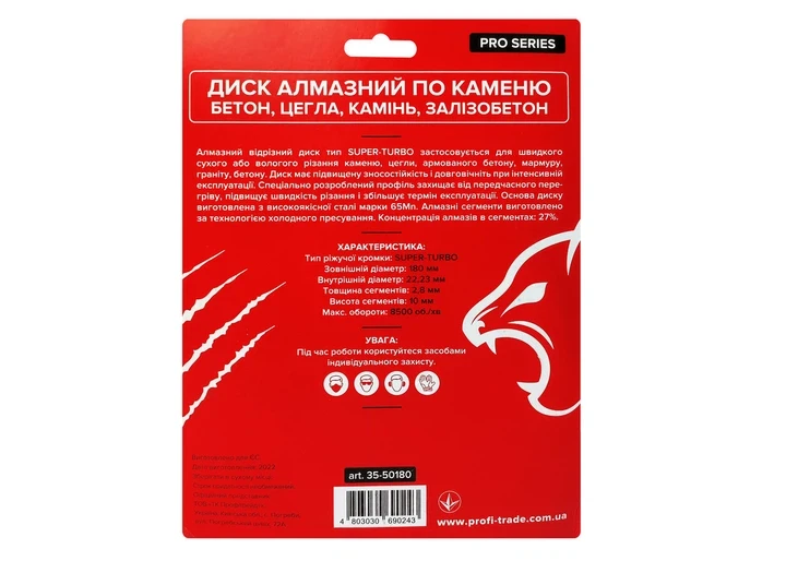 Інформація Круг алмазний відрізний по каменю RED CUT Super Turbo 180х22,23 мм