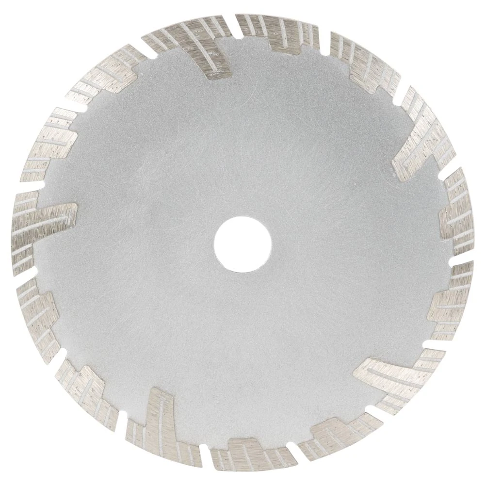 Круг відрізний алмазний Глибокий різ Ø180×22.2мм SIGMA (1923051) призначений для різання бетону, залізобетону, тротуарної плитки, граніту, шиферу, черепиці, цегли, каменю та інших будівельних матеріалів без примусового охолодження. Корпус виготовлений із міцної сталі, здатної витримати значні механічні навантаження та високу температуру. Добре збалансована основа зменшує вібрацію на інструмент та забезпечує високу надійність під час експлуатації. Оптимально підібрані компоненти металевої зв'язки з високою консентрацією високоякісних синтетичних алмазів, прикріплені до основи круга методом холодного пресування алмазів (COLD PRESS), забезпечують тривалий робочий ресурс круга. Завдяки оригінальній турбо-сегментній форми ріжучої кромки, круг активно охолоджується в процесі роботи і не вимагає обов'язкової подачі води. Забезпечує більш глибокий та плавний різ у порівнянні зі стандартними сегментованими кругами. Т-зуб служить для можливого підшліфування бетонних напливів, забезпечує захист ріжучого шару від бічного зносу.