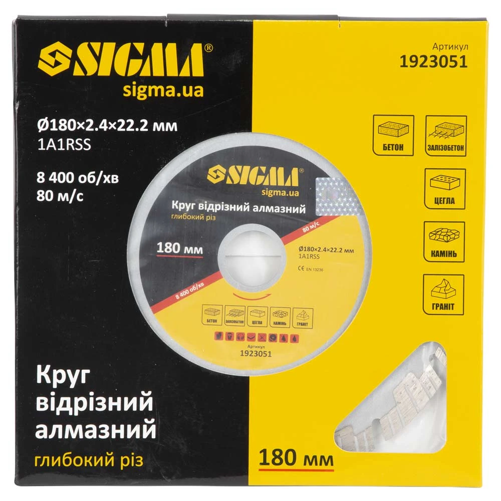 - Круг алмазний відрізний SIGMA Глибокий різ Ø180×22.2мм