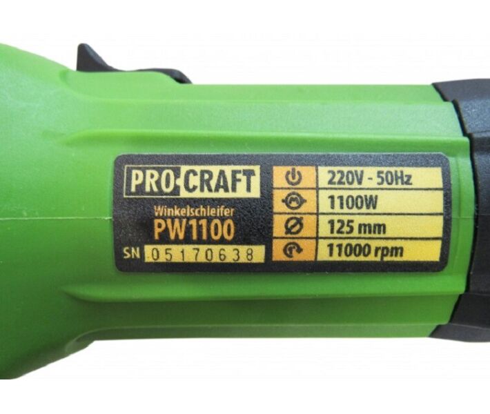 Інформація Кутова шліфувальна машина PROCRAFT PW-1100 125мм