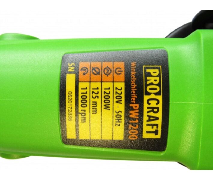 Інформація Кутова шліфувальна машина PROCRAFT PW-1200 125мм