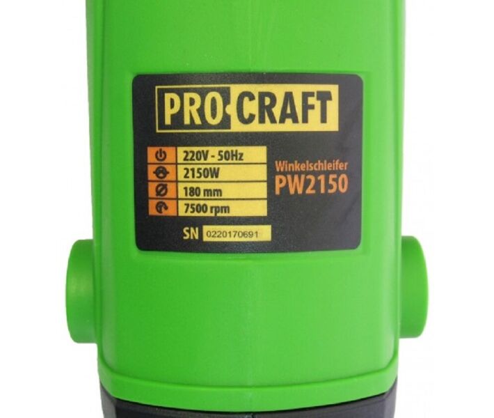 Інформація Кутова шліфувальна машина PROCRAFT PW-2150 180 мм