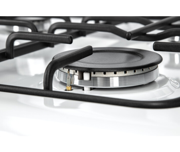 Модель FSC-F5060MW білого кольору проста в керуванні. Варильна поверхня має 4 конфорки, емальовані грати та скляну кришку. Якщо згасне полум'я, спрацює газ-контроль - система, яка вимкне плиту. Варильна поверхня на внутрішню поверхню духової шафи покрита емаллю, завдяки чому змивати жир і інші забруднення нескладно.