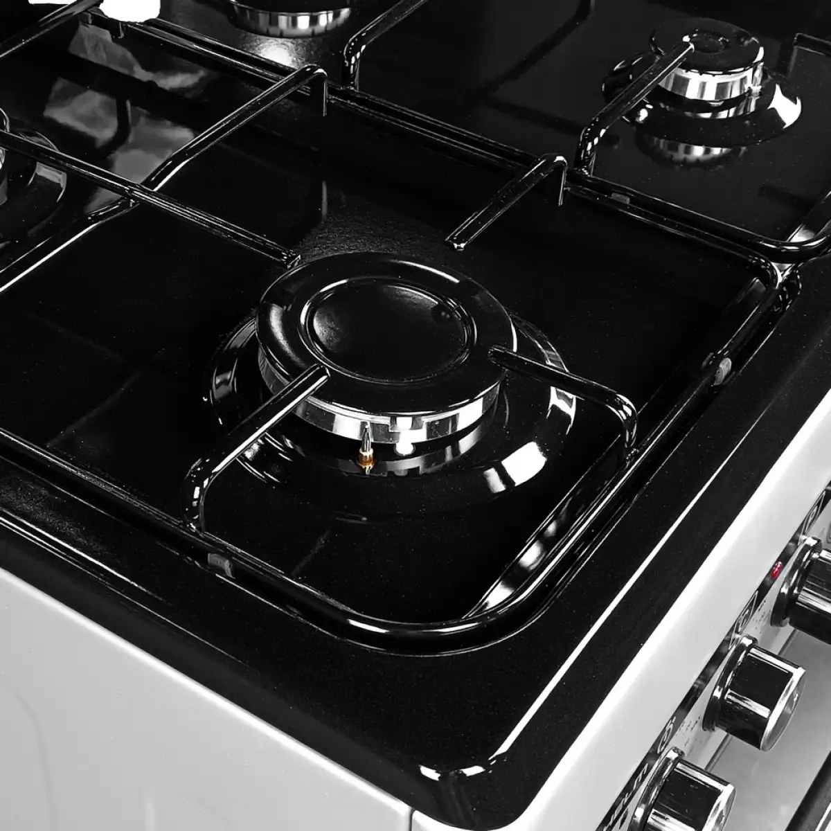 Плита газоелектрична Grunhelm – модель комплектується функцією газ контролю, тому використання цієї моделі буде максимально безпечним та комфортним. На варильній панелі передбачено 4 інноваційні газові конфорки різних розмірів – для комфортного та рівномірного нагріву посуду різних об ємів та діаметрів днища. Потужність газового потоку та полум я регулюють поворотні ручки на передній панелі плити. Підсвітлення духовки (включається кнопкою) – лампа розжарювання. Подвійне скло дверцят духовки – легкознімне внутрішнє скло дверцят духовки. Легко очищається емаль духовки. Подвійна теплоізоляція плити, поверхня зовні не нагрівається. Чавунна решітка поверхні з матовим емалевим покриттям. Регульовані ніжки. FFD запобіжний газовий пристрій для кожного пальника та духовки Ящик для посуду Категорія газу I2H2L Витрати газу (G20) 0,70 м. куб./год Витрати газу (G25) 0,71 м. куб./год
