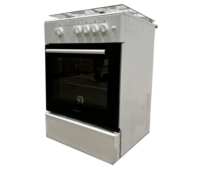 Окрема кухонна плита Grunhelm G4FG6612W-0 з газовими конфорками та газоконтролем. Газова духовка на 60 літрів з підсвіткою (кнопкою) та емаллю легкого очищення. Плита має відділення для посуду у вигляді висувної скриньки та кришку із загартованого скла. Посилена теплоізоляція бічних стінок. Висока якість емалі та товстий метал.