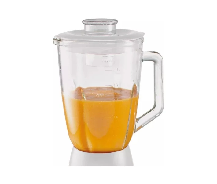 Чаша об'ємом 1,5 л оснащена мірними мітками та дозуючим стаканчиком у верхній частині кришки. Немає необхідності знімати кришку під час додавання інгредієнтів.