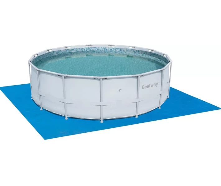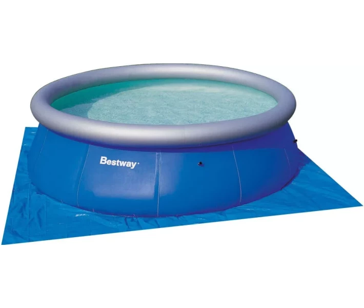 Не вимагає кріплення на поверхні; Стійкість до УФ, вологості, стирання; Поставляється в кольоровій картонній коробці; Рекомендовано для надувних і каркасних басейнів; Тип: покриття під дно; Матеріал: щільний PE; Форма: квадрат