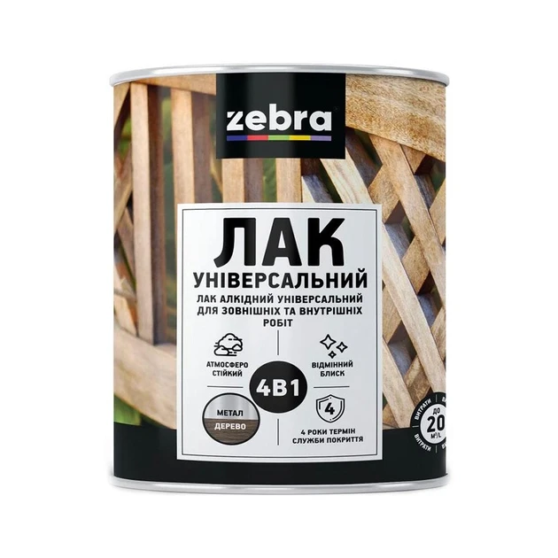 Характеристики Лак універсальний ZEBRA глянсовий 2,1л