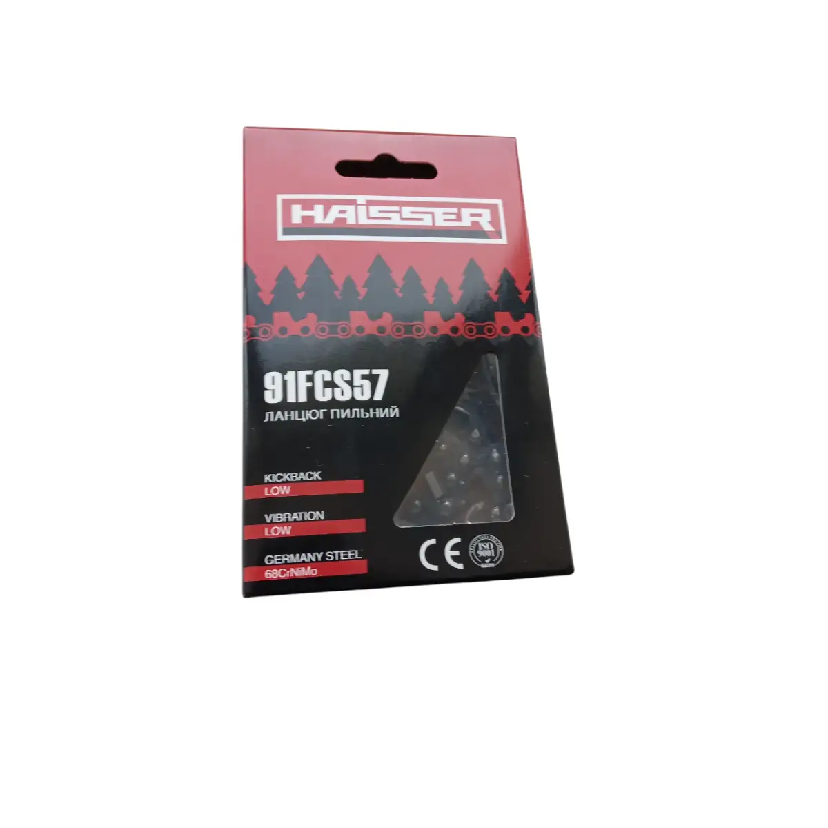 Ланцюг HAISSER 91FCS57 - 57 ланки, паз 1,3мм 0,50 , крок 3/8 L- це високоякісний ріжучий ланцюг для бензопил, розроблений для ефективного та чистого розпилювання деревини.