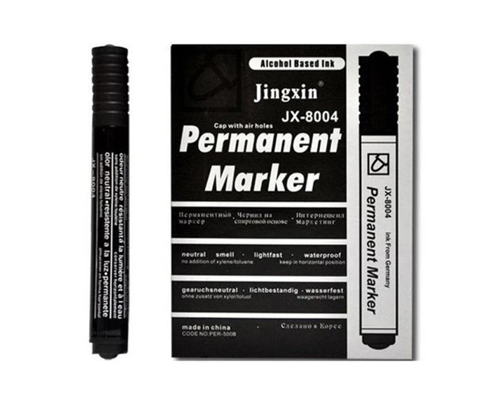 Маркер чорний круглий призначений для нанесення постійних, практично не видаляються написів на будь-які гладкі поверхні. Ідеально підходить для робіт по наступних поверхонь: металу, дерева, скла, картону, пластику, кераміці і т. д. Маркер є універсальним і також можливо лист на ряді інших поверхонь, таких як вологе дерево, брудний, іржавий метал, плівки, кахель і багатьох інших. Пишучий вузол маркера виготовлений так, що при листі не вимагає сильного натискання на маркер. Напис стійка до вигорання, до змивання водою. Чорнило маркера практично без запаху.