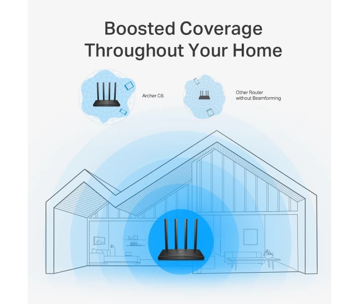 MU-MIMO дає змогу роутеру Archer C6 обмінюватися даними відразу з декількома пристроями, завдяки чому більше не буде затримок під час передавання даних і ефективніше працюватиме Wi-Fi мережа.