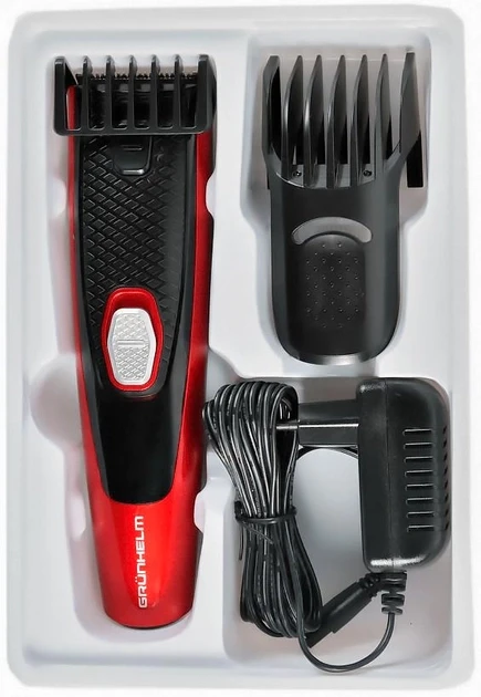 Опис Акумуляторна стрижка Grunhelm GHC528 Яскравий, продуманий стиль, ергономічний дизайн, висока якість кожної деталі - це машинка для стрижки Grunhelm GHC528. За допомогою телескопічної насадки та коліщатка для регулювання вибрати необхідну довжину стрижки легко та просто. Леза з високоякісної нержавіючої сталі з титановим покриттям швидко та дбайливо зрізають волосся будь-якого типу та жорсткості одним рухом. Для максимальної потужності та свободи руху живлення приладу може здійснюватись як від мережі, так і від акумулятора.
