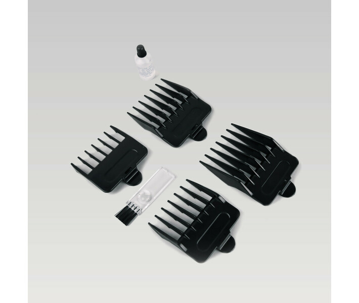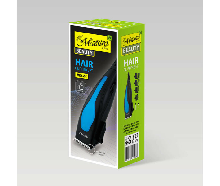 Машинка для стрижки волосся Maestro MR-651C Машинка Maestro MR-651C призначена для стрижки волосся. Леза машинки виготовлені з нержавіючої сталі, що забезпечує тривалий термін служби без додаткового заточування. Корпус машинки виготовлений із пластику чорного або фіолетового кольору. Петля в основі шнура дозволяє компактно зберігати машинку в зручному місці. У комплекті 4 насадки-гребня для стрижки 3, 6, 9, 12 мм. Також у комплекті ножиці, перукарський гребінець. Для догляду за машинкою для стрижки в комплекті щіточка для очищення лез масло для їхнього змащення.