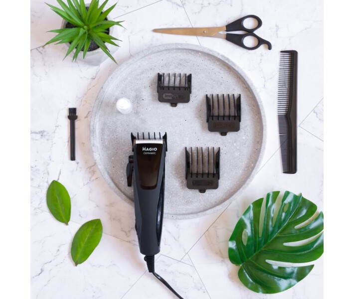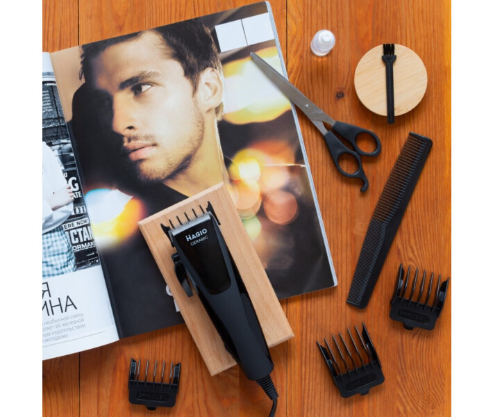 Magio MG-584 має на увазі регулювання довжини стрижки, оскільки є насадки для стрижки, розраховані на 3, 6, 9, 12 мм від росту волосся. Заміна насадок здійснюється простим шляхом, також насадки легко мити і чистити від волосся. Леза на насадках виконані: верхнє зі сталі, нижня - з кераміки, обидва цих матеріали міцні і можуть бути в ходу дуже довго. Сталь не іржавіє, оскільки тут використана нержавіюча сталь, навіть при контакті з водою вона не змінить своїх характеристик.