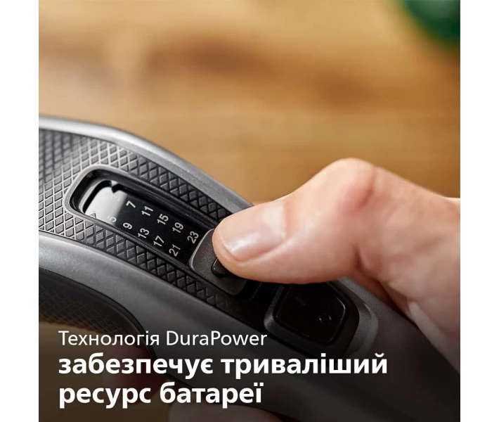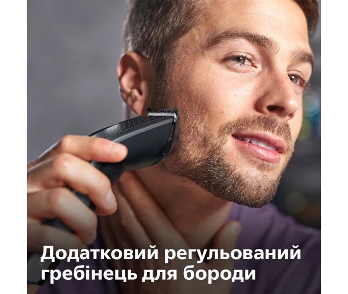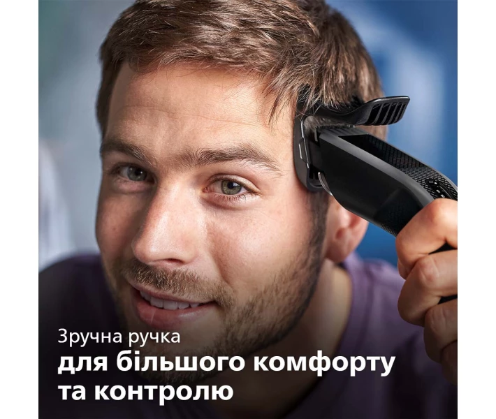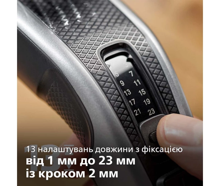 Система вибору довжини волосся в моделі Philips Hairclipper series3000 реалізована за рахунок рухомого слайдера. Точність фіксації забезпечить вам будь-який варіант стрижки в діапазоні від 1 до 23 мм. А якщо зняти гребінь, то довжина стрижки зменшиться до 0,5 мм.