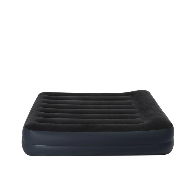 Двоспальне надувне ліжко з підголівником Інтекс 64124 виготовляється у стильному чорному кольорі та із застосуванням авторських розробок бренду. При цьому використовується система Dura-Beam із технологією Fiber-Tech. Модель добре пружинить, не просідає і зберігає правильну форму. Також серед переваг виробу варто виділити такі факти:
