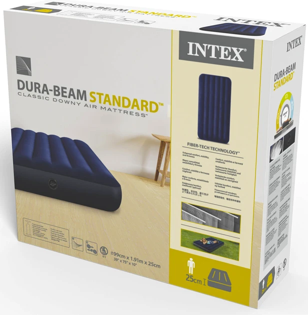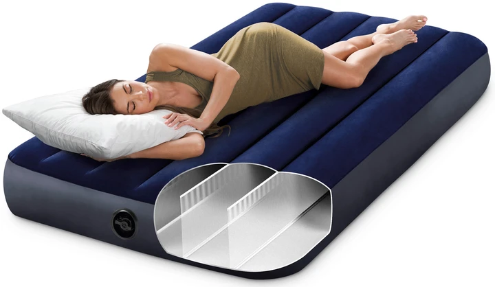 Надувний матрац intex 64757 прийшов на зміну Intex 68757 шириною 99 см, Серія Classic Downy Bed може з комфортом помістити одну людину. Після придбання матраца ви більше не будете панічно шукати куди визначити спати затрималися до ночі гостей. Якщо раптово зібралися на природу не доведеться думати що підстелити і на чому сидіти. Так само ці матраци використовують в наметах, щоб не спати на "голій" землі. Матрац Intex 64757 допоможе зберегти час в багатьох несподіваних життєвих ситуаціях.
