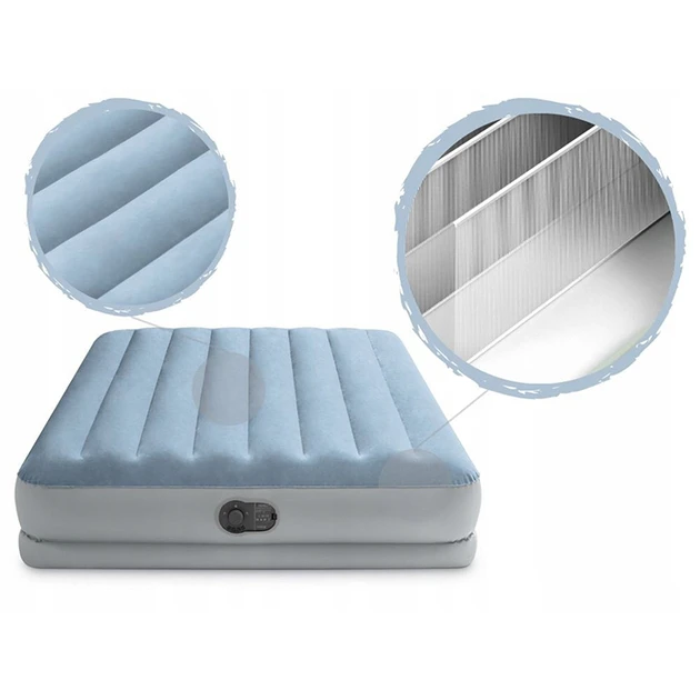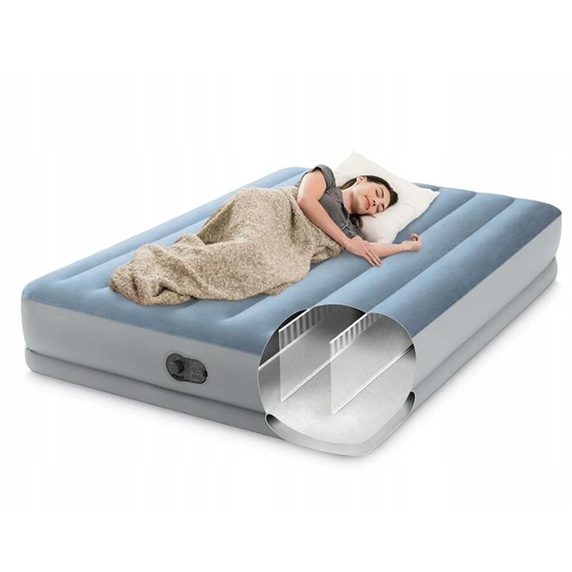 В цьому випадку ідеально підійде надувне ліжко Intex 64159. За рахунок продуктивного електронасоса, який йде в комплекті, в лічені хвилини можна організувати спальне місце довжиною 203 см шириною 152 см і висотою 36 см.Текстура верхнього покриття виконана Таким чином, що постільна білизна не зісковзує з нього.