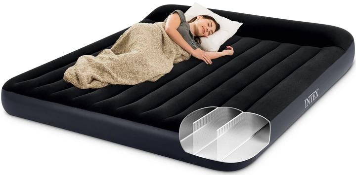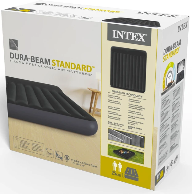 Надувний матрац Intex 64144 прийшов на зміну (на додаток) Intex 68770 серія Pillow Rest Classic Bed - незамінна річ для відпочинку вдома або на природі. Ідеально застосовувати для облаштування додаткового ліжка з нагоди приїзду гостей. Накачування матраца повітрям дає можливість індивідуально відрегулювати м'якість, покриття поверхні красивим, приємним при торканні велюровим матеріалом перешкоджає ковзанню простирадлом. Виконане в спокійному темно-сірому кольорі, виріб естетично впишеться в інтер'єр кімнати.