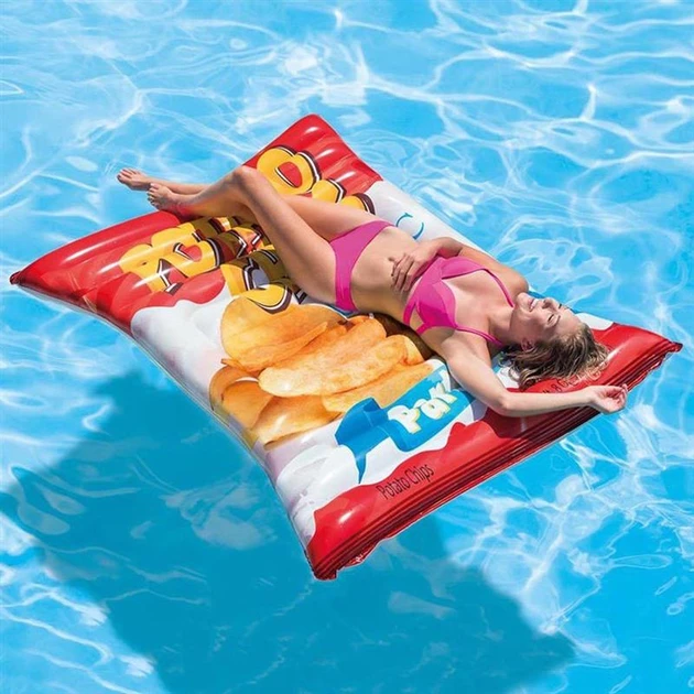 Надувний матрац інтекс 58776 Чіпси 178 х 140 см, що компактно складається, представлений у вигляді яскравої пачки чіпсів, стане вірним супутником для юних шукачів пригод під час активного відпочинку на воді. Універсальна модель, що ідеально застосовується як для басейну, так для поїздок на море або річку, поєднує в собі все необхідне, щоб Ваша дитина отримала море радості. Реалістичне виконання робить матрац неймовірно схожим справжню пачку з чіпсами. Конструкція є однією повітряною камерою, з внутрішніми вініловими перегородками для максимального комфорту під час використання. Модель виготовлена із ущільненого вінілу, стійкого до стирання, який після тривалого перебування на відкритому сонці не виділяє токсичних речовин. Безпечний, просторий матрац – незамінний атрибут для маленьких мореплавців,
