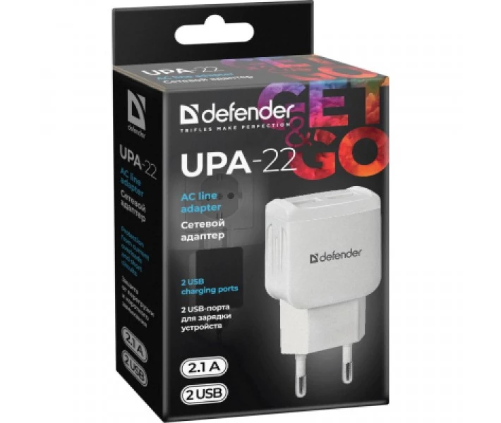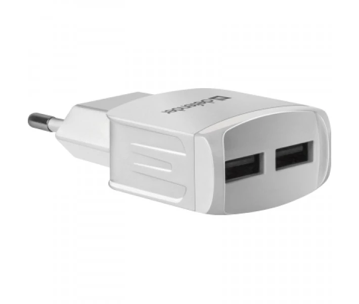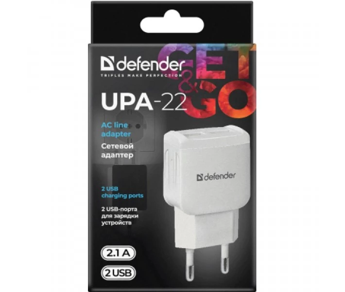 - Мережевий зарядний пристрій DEFENDER UPA-22 біла, 2xUSB, 2.1А