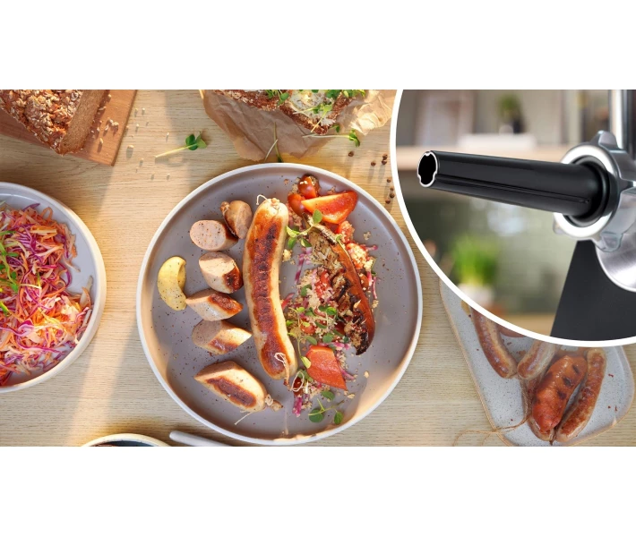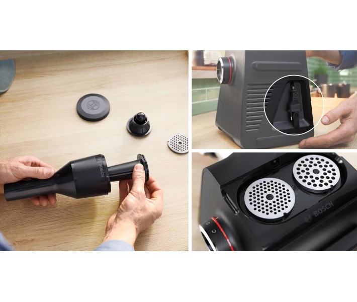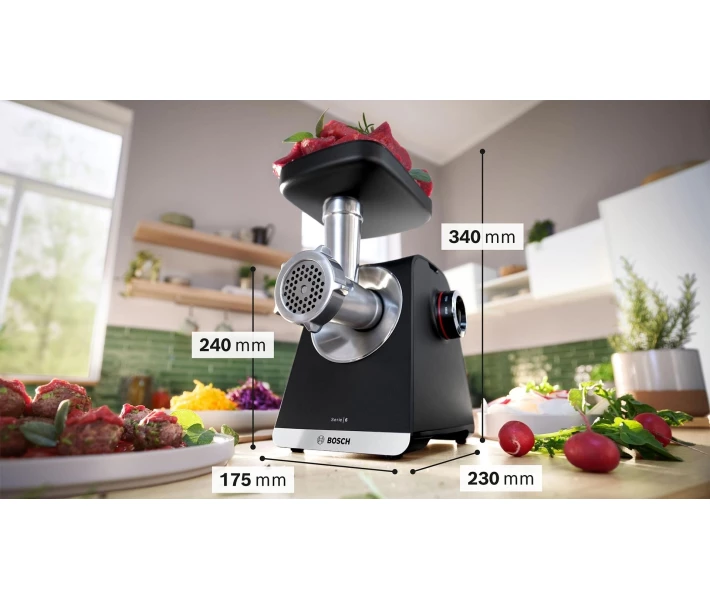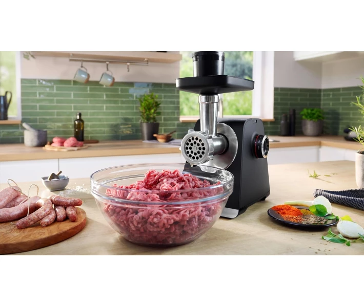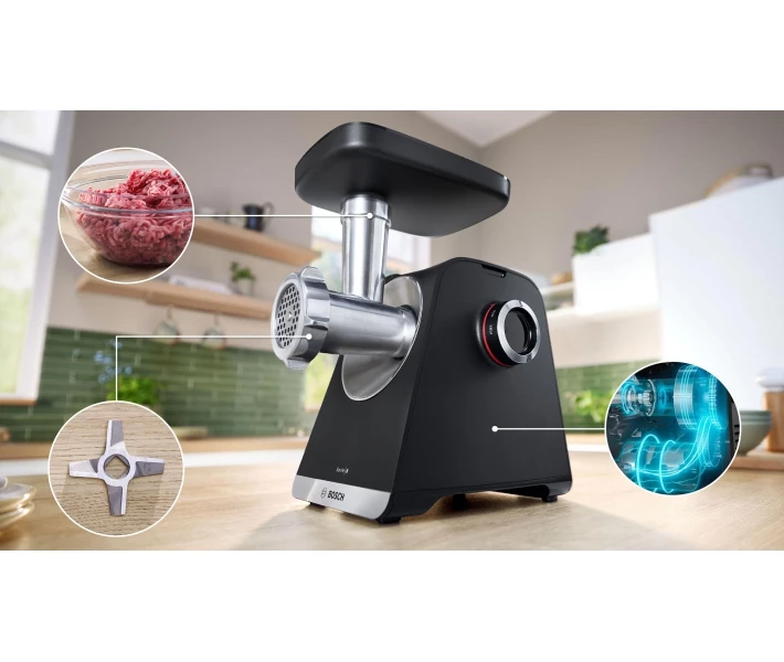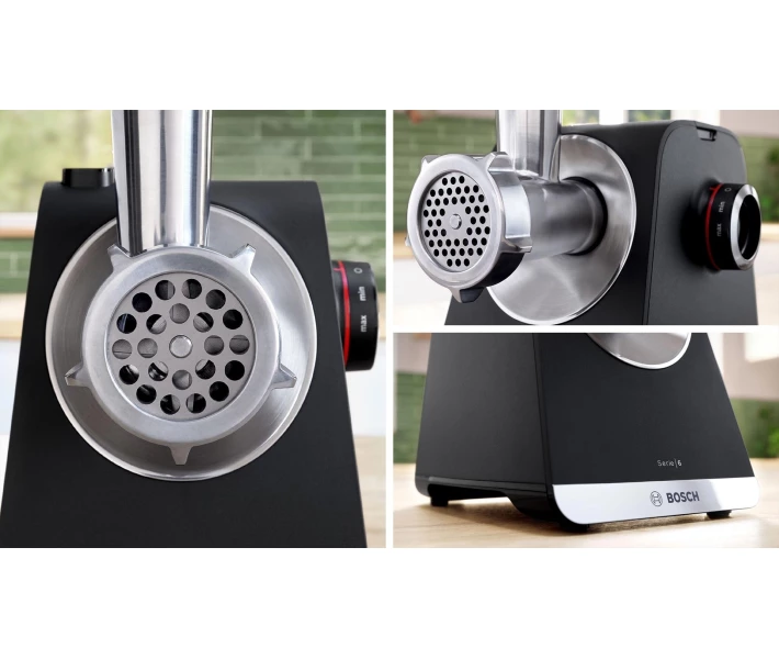 Bosch MultiPower Серія 6 обробляє 3.5 кг м’яса за хвилину завдяки потужності моторного блоку 2100 Вт і великій камері.