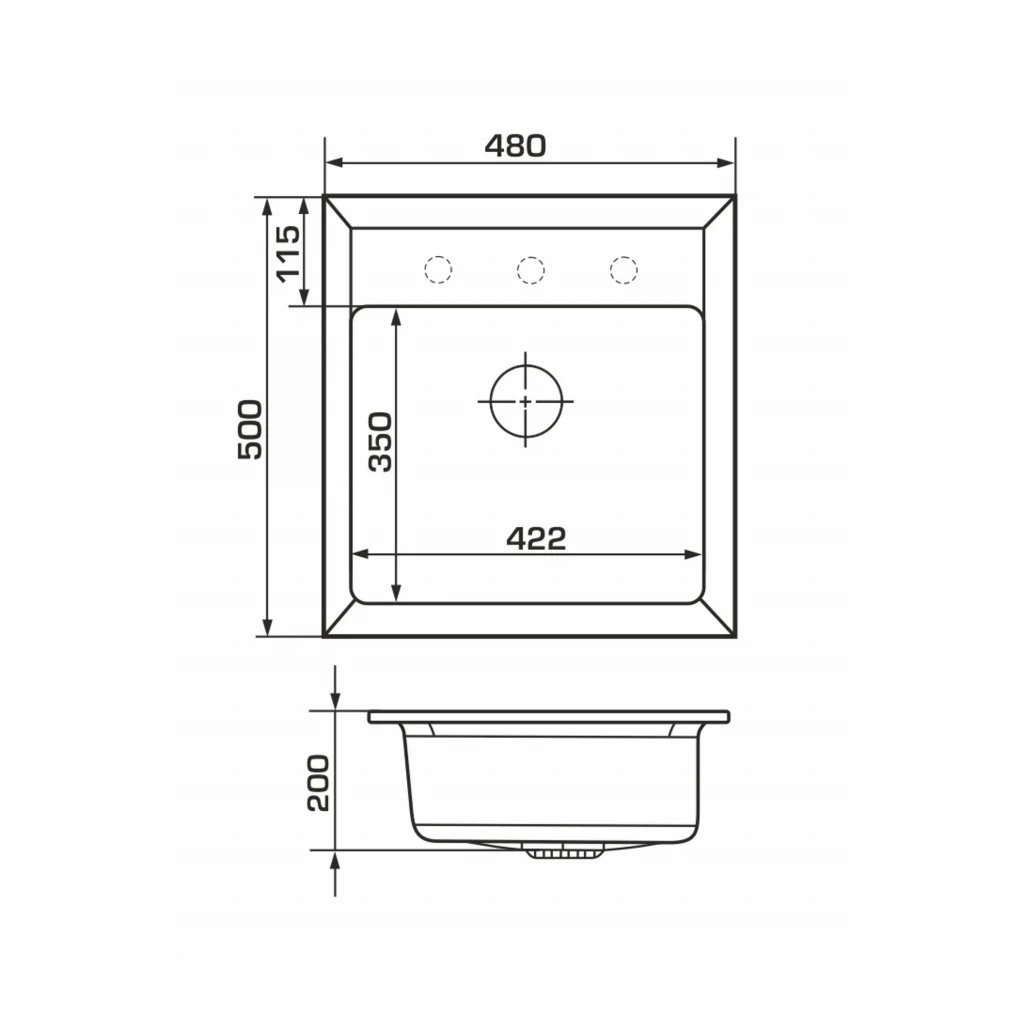 Сучасна квадратна кухонна мийка підійде на тумбу шириною 500 мм. Проста геометрична форма GRANADO Merida завдяки плавним вигинам і тонким лініям виглядає стильно й акуратно.